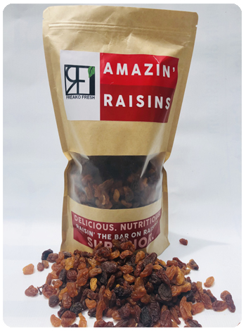 Made from traditional techniques, Freako Fresh’s Amazin’ Raisins are a revolutionary product that has not yet hit the shelves of the common households. Originally raisins were made by dehydrating them in the sun, this caramelized the raisins giving it it’s distinct red colour, otherwise known as Sultana raisins. But in the last few decades, unripe grapes were harvested and they were dried in unnatural conditions with the use of extensive chemicals and pesticides. As the grapes used were not ripe yet, they weren’t sweet- giving rise to sugar dipped raisins and other dry fruits. We at Freako Fresh, sourced premium quality, ripe raisins and dried them in the traditional manner, under the sun, giving them a distinct colour which is not very often seen. Since the grapes used were premium quality, they were naturally sweet, making things like sugar dipping and using preservatives be useless. Adding onto this they have more antioxidants, have a deeper flavour profile.